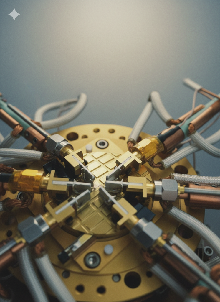 ● THIS IS WHAT A EXPERIMENTAL QUANTUM COMPUTER L0OKs LIKE today.● The qubits — the basic building blocks of quantum computing — must be kept inside a special refrigerator. Here, the temperature is colder than outer space, to keep them stable. (< 1K).● All the instruments that control and send signals to the qubits are outside the refrigerator, at room temperature — about 300 times hotter. This creates major technical challenges.● THIS IS WHAT A EXPERIMENTAL QUANTUM COMPUTER L0OKs LIKE today.● The qubits — the basic building blocks of quantum computing — must be kept inside a special refrigerator. Here, the temperature is colder than outer space, to keep them stable. (< 1K).● All the instruments that control and send signals to the qubits are outside the refrigerator, at room temperature — about 300 times hotter. This creates major technical challenges.